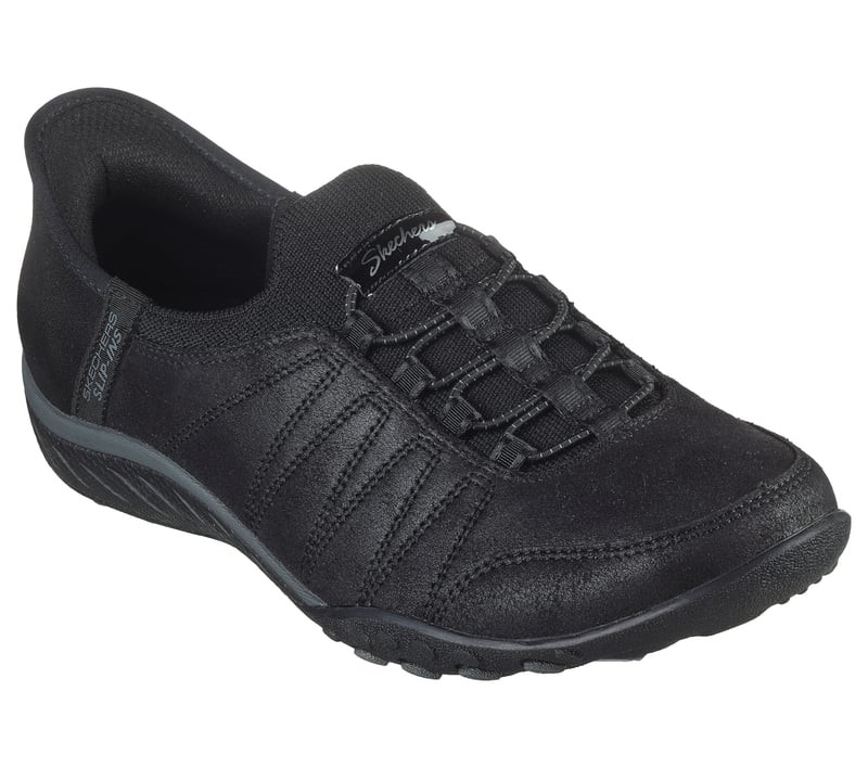 スケッチャーズ スリップインズ リラックスドフィット:ブリーズ イージー - ホームボディはStretch Fit™(ストレッチフィット)メッシュと人工皮革のアッパー、装飾用ストレッチレース、クッション性のあるSkechers Air-Cooled Memory Foam™(スケッチャーズ エアクールドメモリーフォーム)インソールが特長のシューズ。