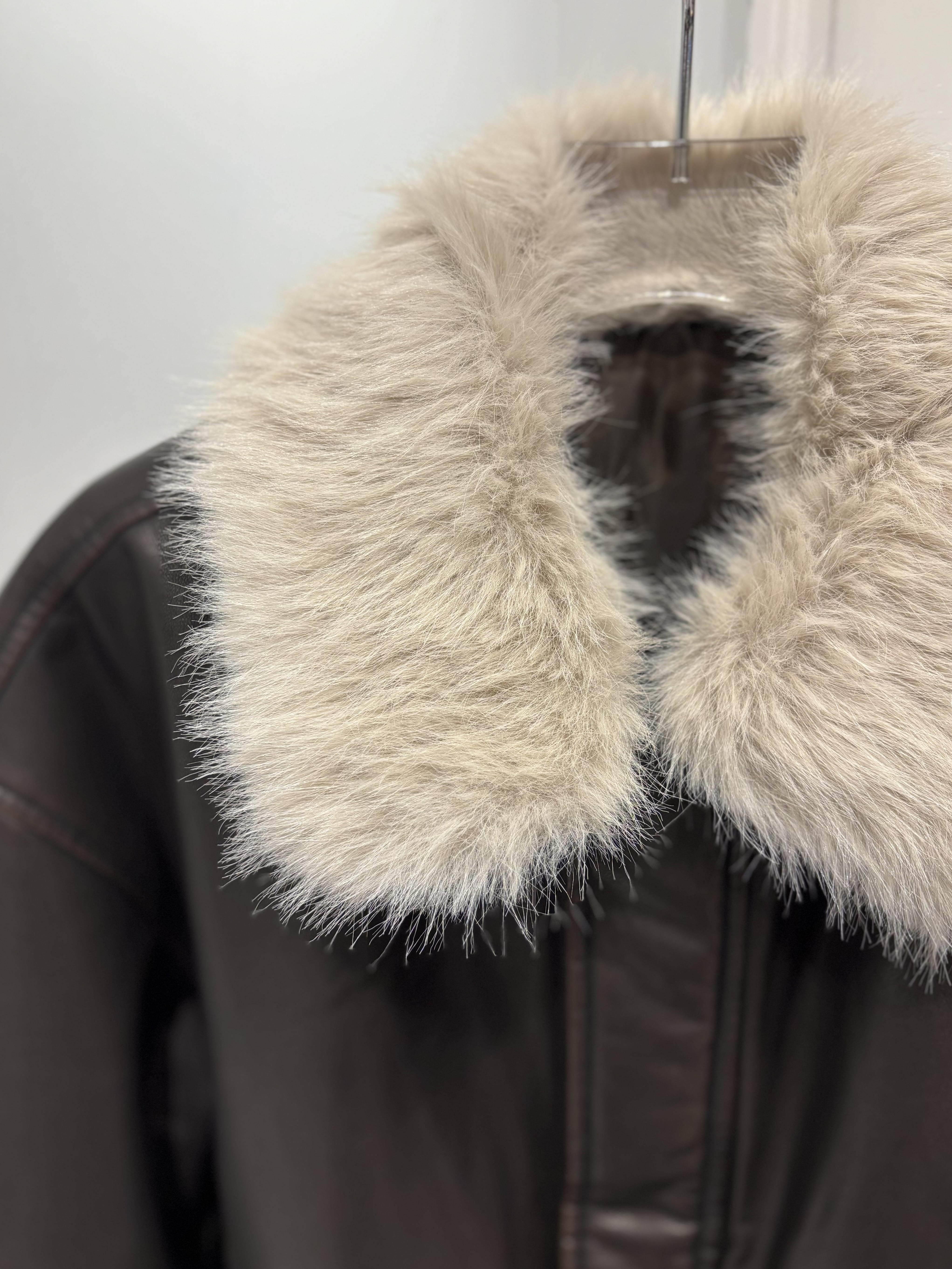 「ヴィンテージライク衿フェイクファーブルゾン」