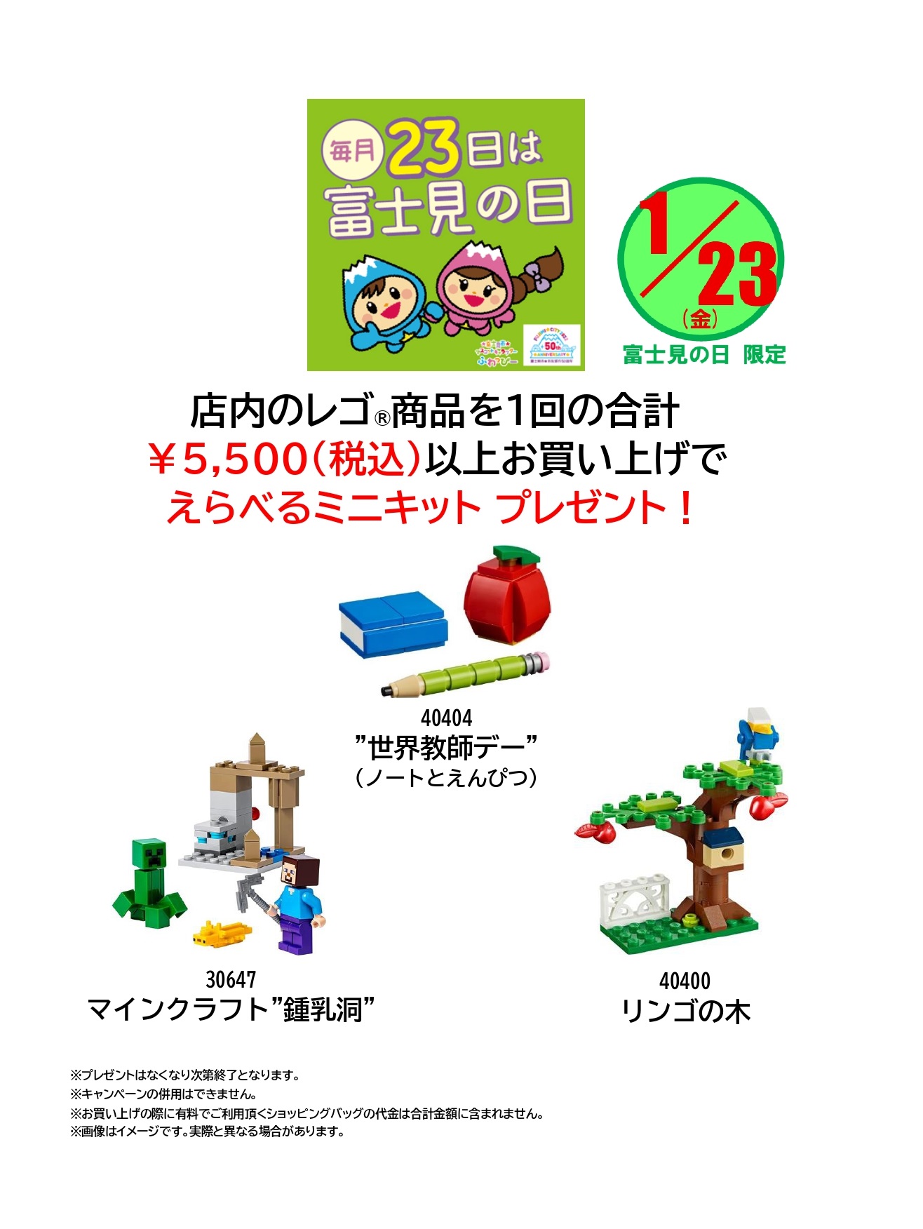 【1/23(金)富士見の日限定キャンペーン!】5,500円以上お買い上げでレゴ(R)ミニキットプレゼント♪