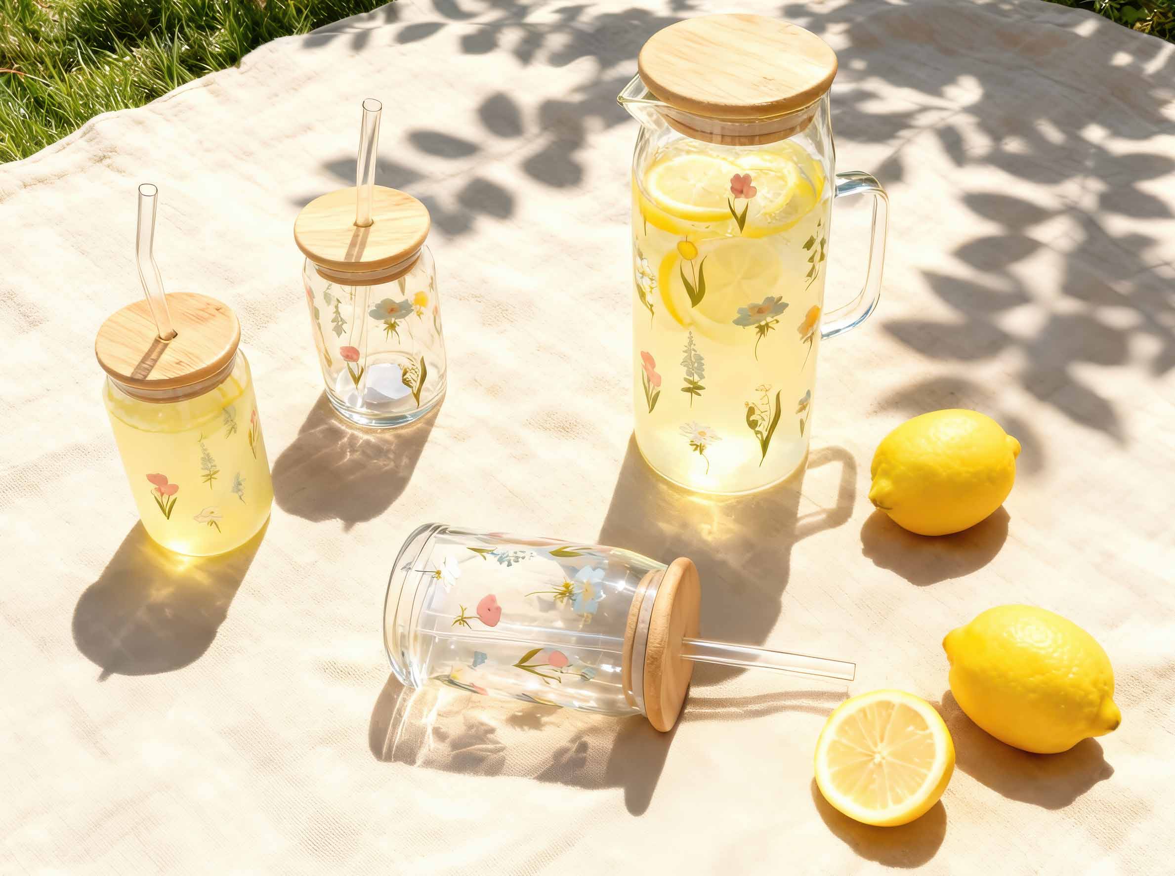 ガラスストローやデザートスプーンには、ハチとバタフライがあしらわれています。