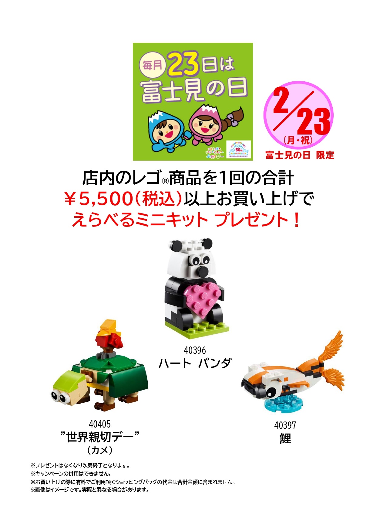 【2/23(月・祝)富士見の日限定特典!】5,500円以上お買い上げでレゴ(R)ミニキットプレゼント♪