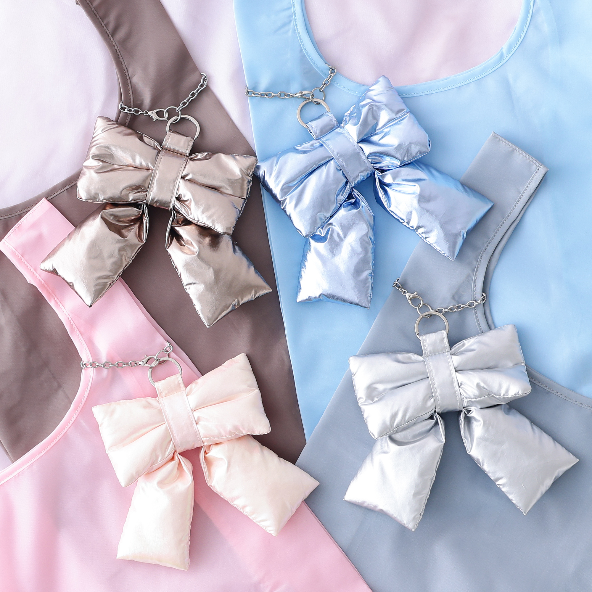 ぷっくりした質感と、つやつやとした素材がトレンド感たっぷりなリボン型のチャーム!