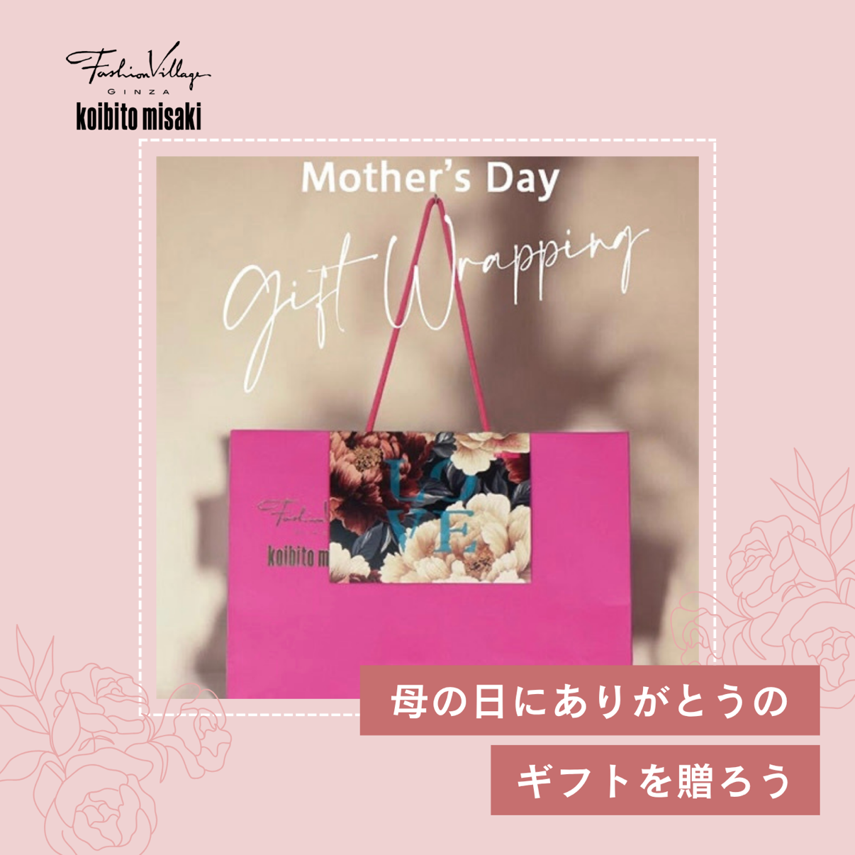 通常のギフトラッピングに、母の日限定ショッパーカバーをご用意しております。