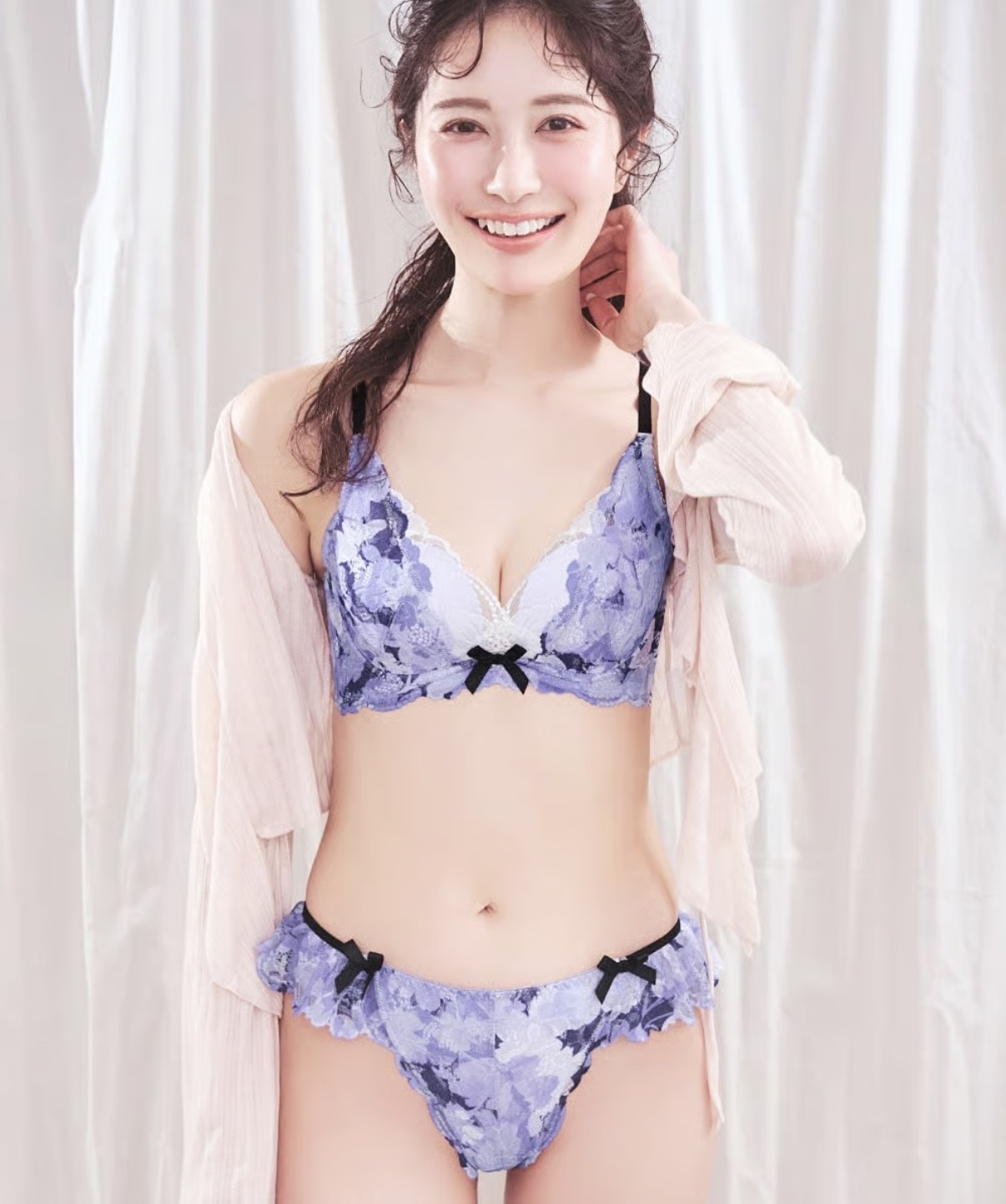繊細な花柄レースに花のシルエットをプリントした、立体感のある上品でフェミニンなデザインのブラ。脇高設計と痛くなりにくいように設計されたL字ワイヤーで長時間の着用でも苦しくなりません。