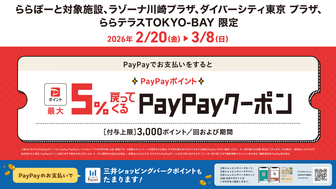 PayPayでお支払いをするとPayPayポイント最大5%戻ってくるクーポン配信中!
