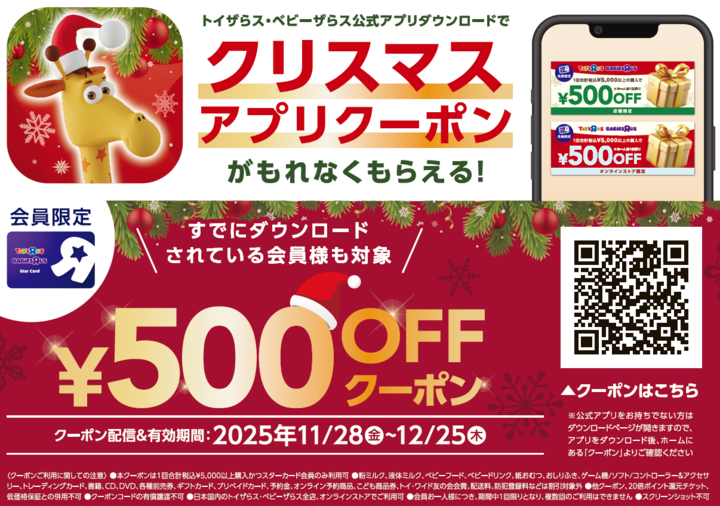 トイザらス・ベビーザらス公式アプリでクリスマスに使える ¥500 offクーポンプレゼント✨