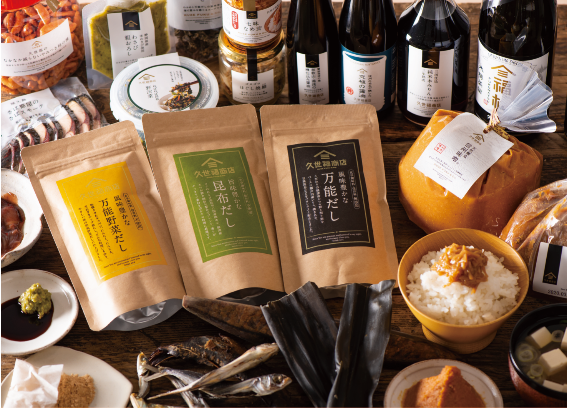 各地の地元で愛される商品をつくる、誇り高き生産者の皆さんと一緒に開発した、だし・調味料・冷凍食品・お菓子などを取り揃えています。