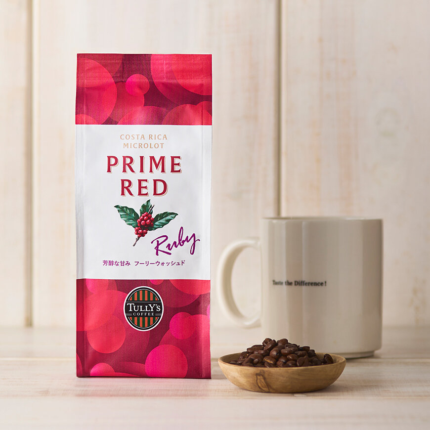 コーヒーの実が完熟した瞬間を見極めて収穫した特別なコーヒーです。タリーズではこの完熟の一瞬を「プライムレッド」と名付け、一粒ずつ手収穫することにより最高の甘みを実現しました。サクランボのような果実感と芳醇な甘みが特徴的で、カラメルを思わせる余韻が長く続きます。