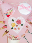 春の訪れを感じさせるチューリップにインスパイアされた華やかなチョコレート。こだわりのザクザク食感のコーンに小さなバラとリーフのチョコレートを包み込んだ、まるで花束のようなチョコレートです。