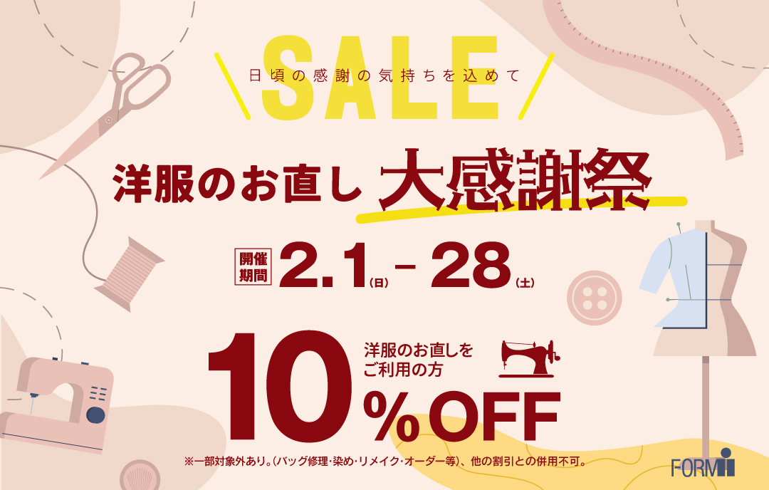 本日、2026/2/1(日)より、洋服のお直し 大感謝祭がスタート!!