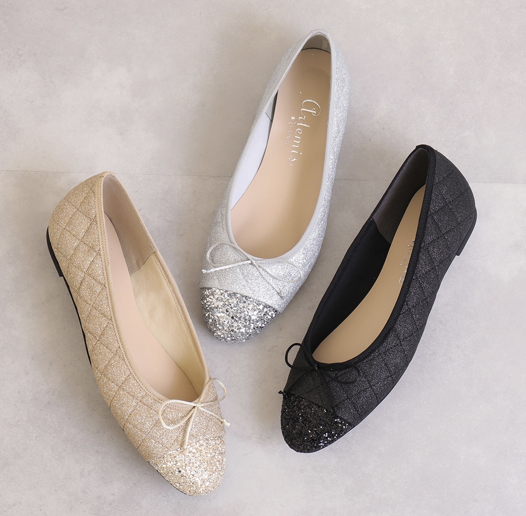 つま先グリッター ラメキルティングバレエシューズのご紹介です