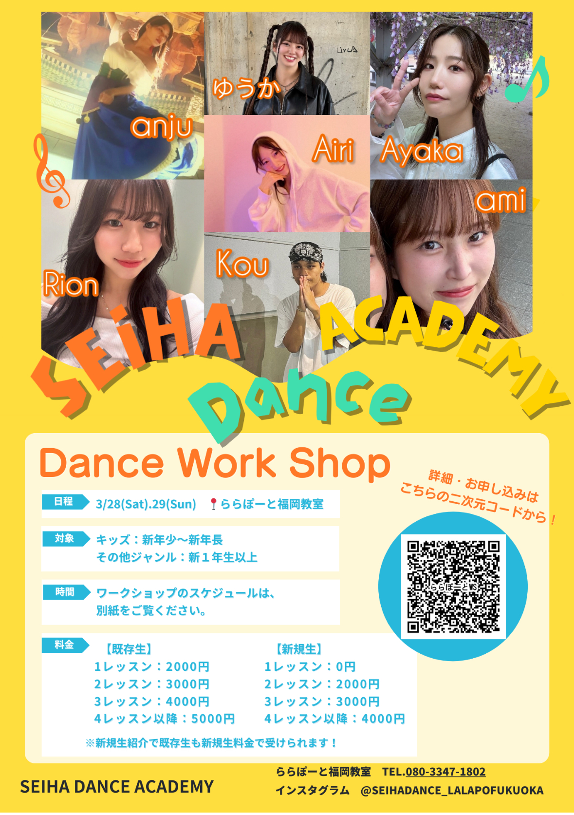 セイハダンスアカデミーららぽーと福岡教室のインスタグラムより担当講師とジャンルをご確認できます!