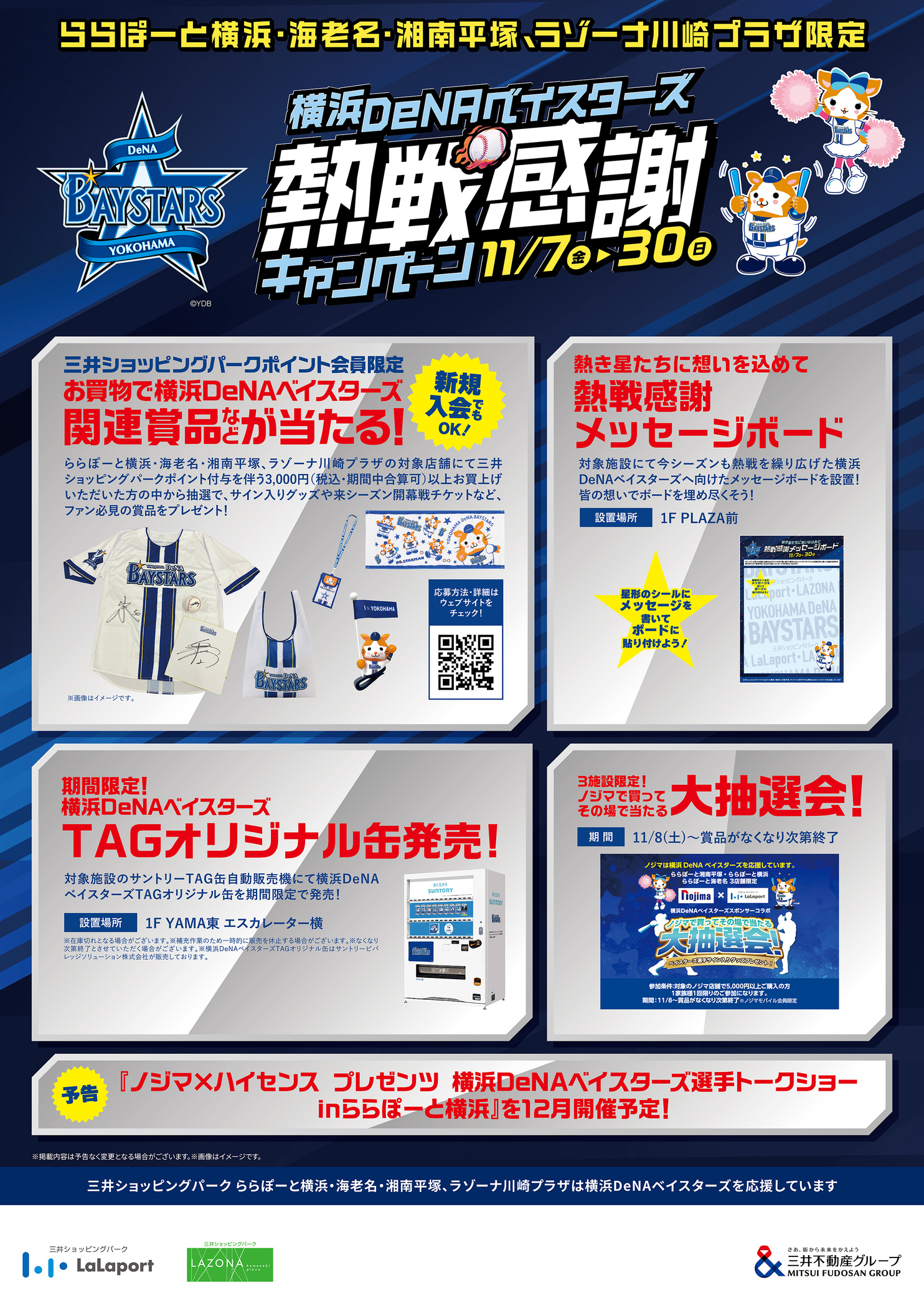 11/7(金)~11/30(日)の期間中、『横浜DeNAベイスターズ 熱戦感謝キャンペーン』を開催いたします。