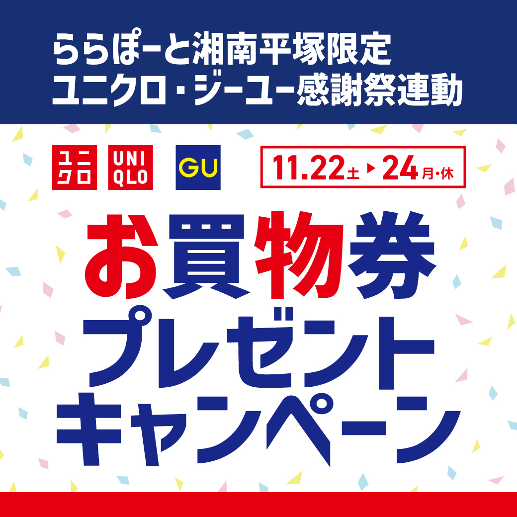 - <ららぽーと湘南平塚限定>ユニクロ・GU感謝祭連動 お買物券プレゼントキャンペーン