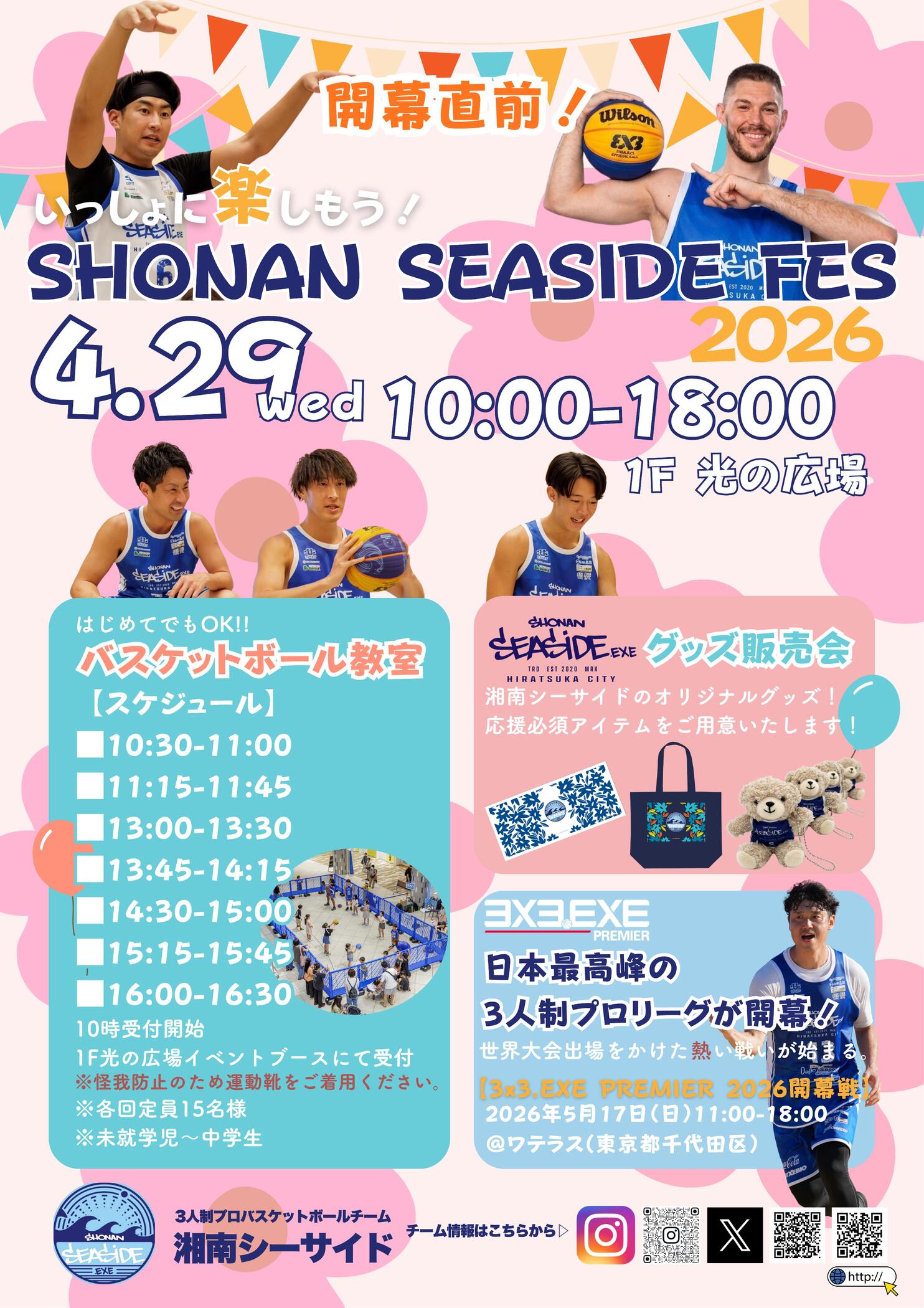 平塚を拠点に活動する3人制プロバスケットボールチーム「SHONAN SEASIDE(湘南シーサイド)」による「バスケットボール教室」を開催!