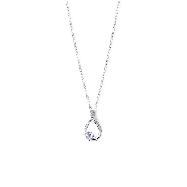 光を受け、きらめくしずくを表現したティアドロップモチーフのネックレス。なめらかなラインに沿ってセットされたタンザナイトが、洗練された透明感を引き立てます。