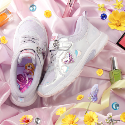 ブーツ・スニーカー共に登場しており、それぞれにDISNEY PRINCESS(ラプンツェル・エルサ・アリエル)のカラーがあしらわれた可愛らしいシューズに仕上がっています。