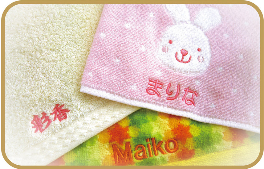 タオルご購入の際は、名入れ刺繍のサービス(有料・特価品除外)も行っております。