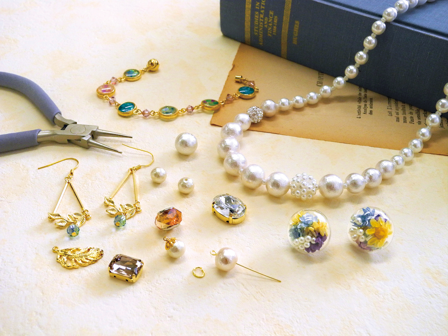 - スワロフスキー、エレメント、チェコビーズ、オリジナルパーツ、天然石、デコ用パーツ、アクセサリー金具、工具類、完成品アクセサリー