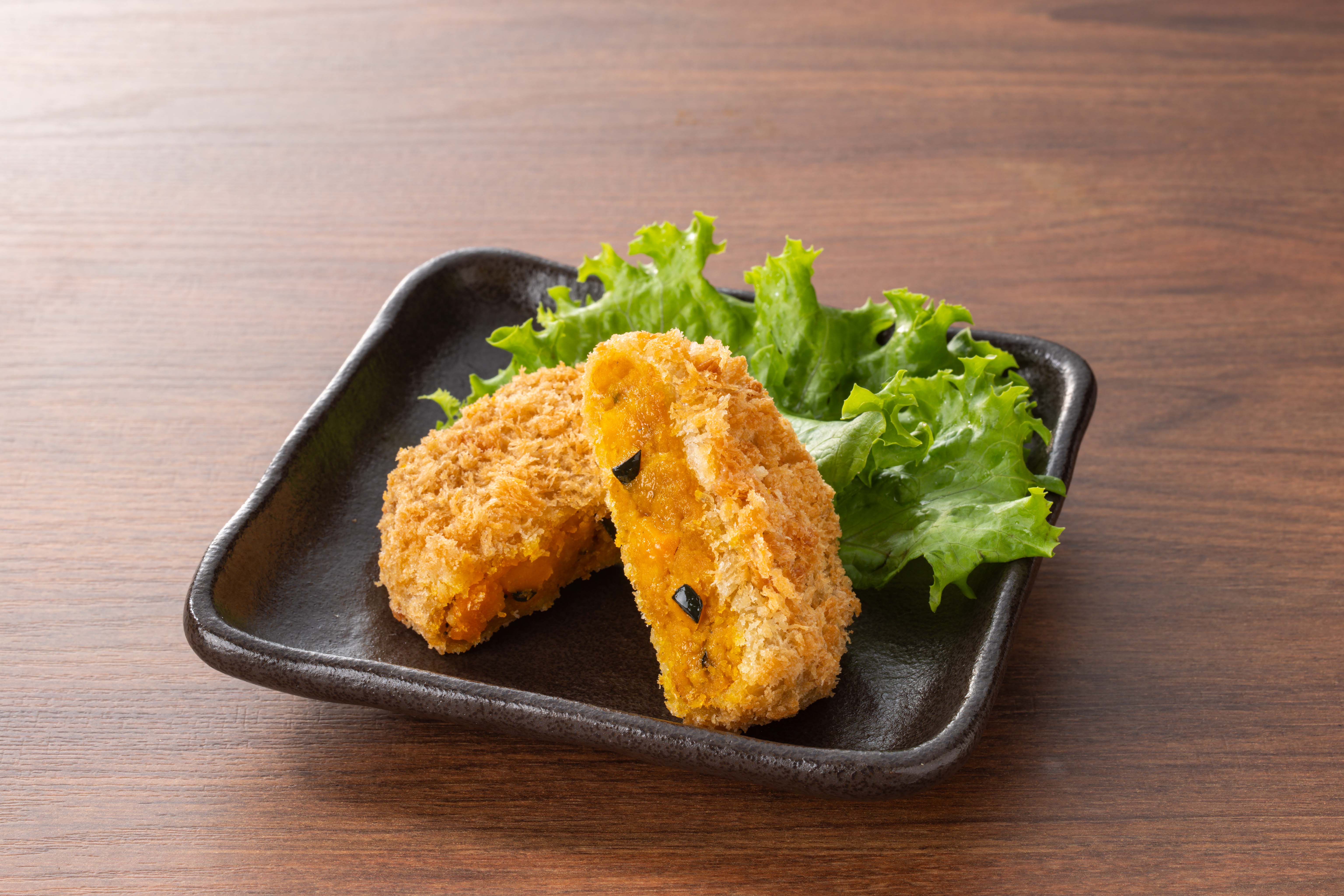 北海道産くりゆたか南瓜を皮ごと使用した、自然な甘さと食感が美味しいコロッケです。