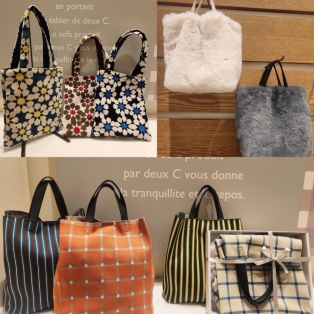 カジュアルなショルダー付きのミニボストン、大きめ花柄のジャガードトート、コンパクトな長毛ファーバッグ、カラフルなチェック&ストライプのニットトートなどアイテム豊富に取り揃えております。