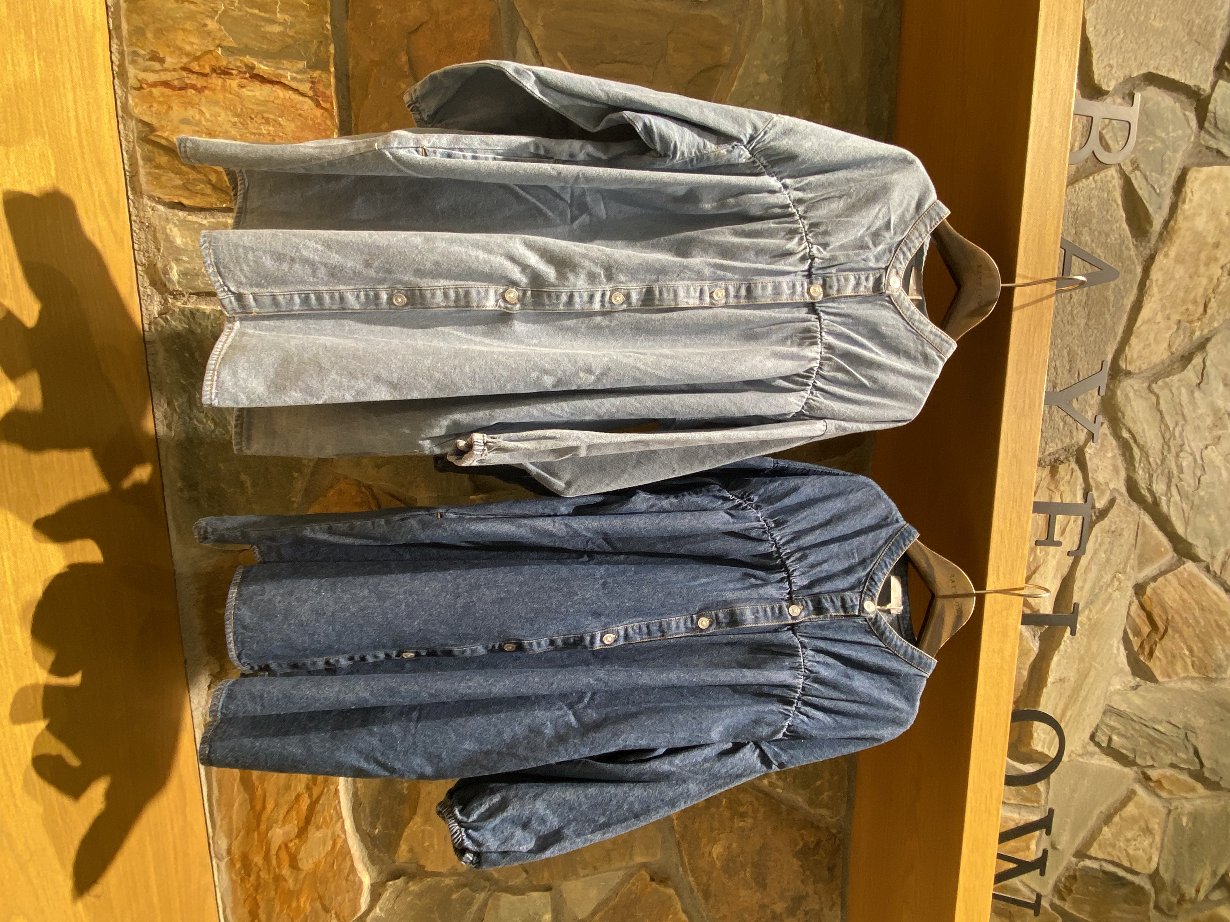 胸切り替えでギャザーの入ったボリュームワンピでアウターとしても着られるデザインワンピです♩