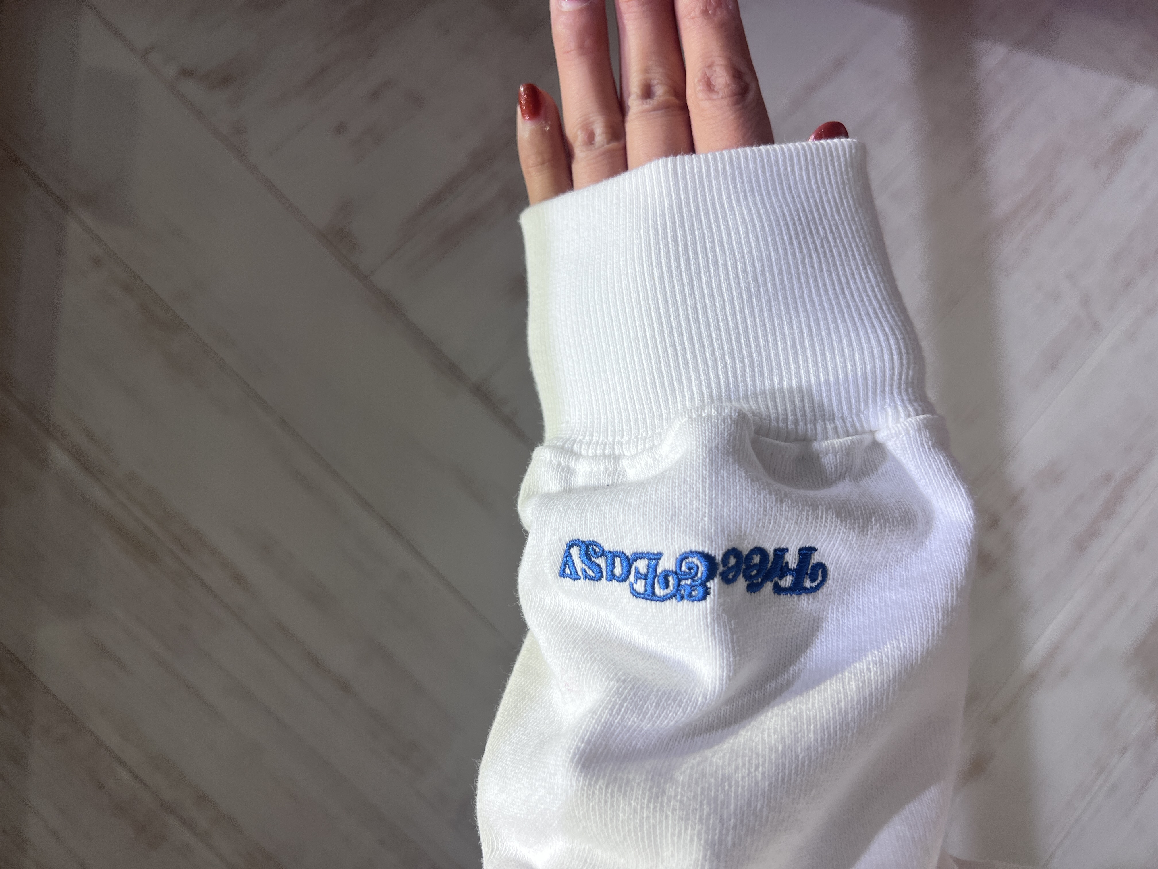 左袖口にはブランドロゴの刺繍入りで、オーバーサイズでユニセックスで着れる一枚です!