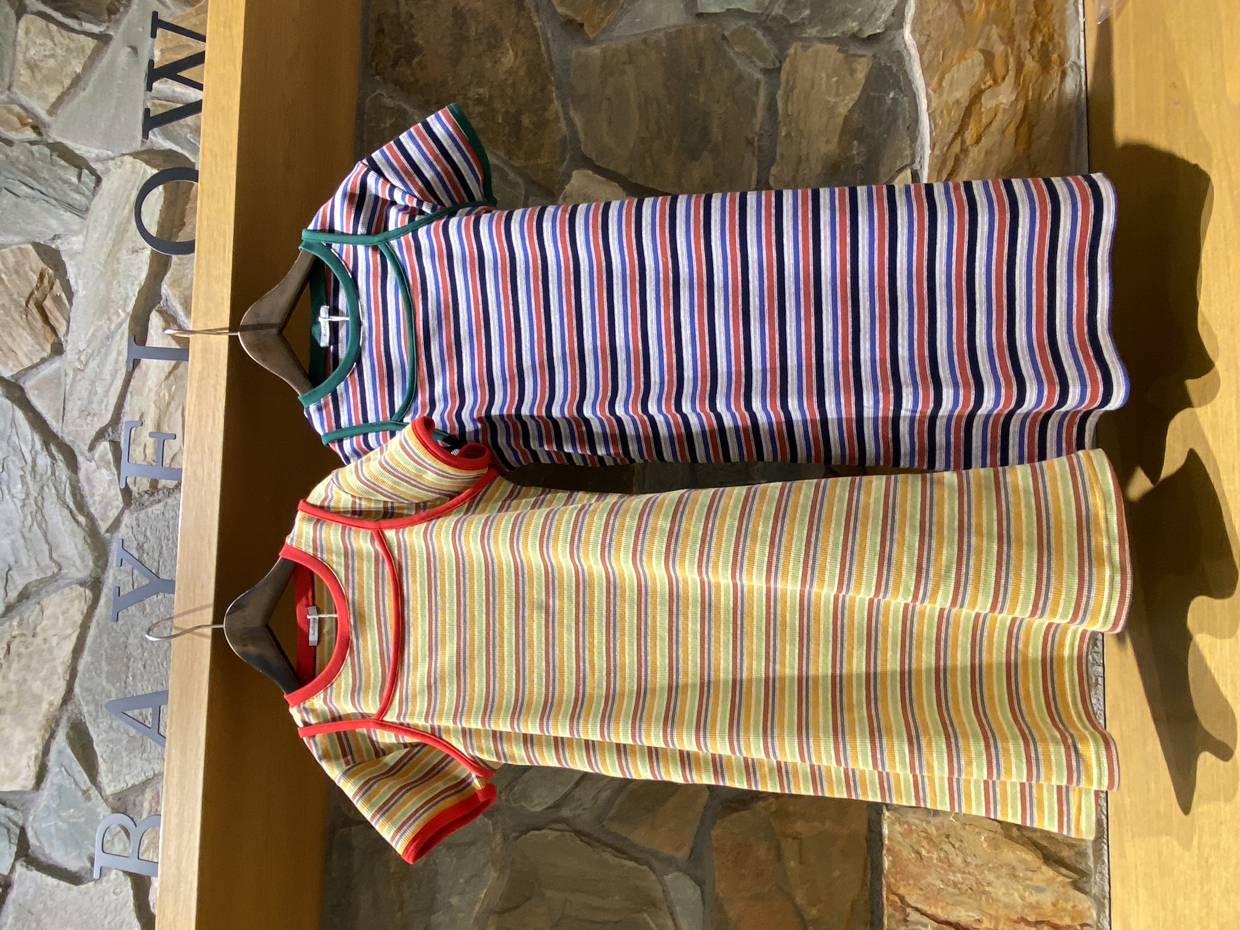 1枚着用でも安心のしっかりとしたリブ素材の、レトロなボーダー柄!!