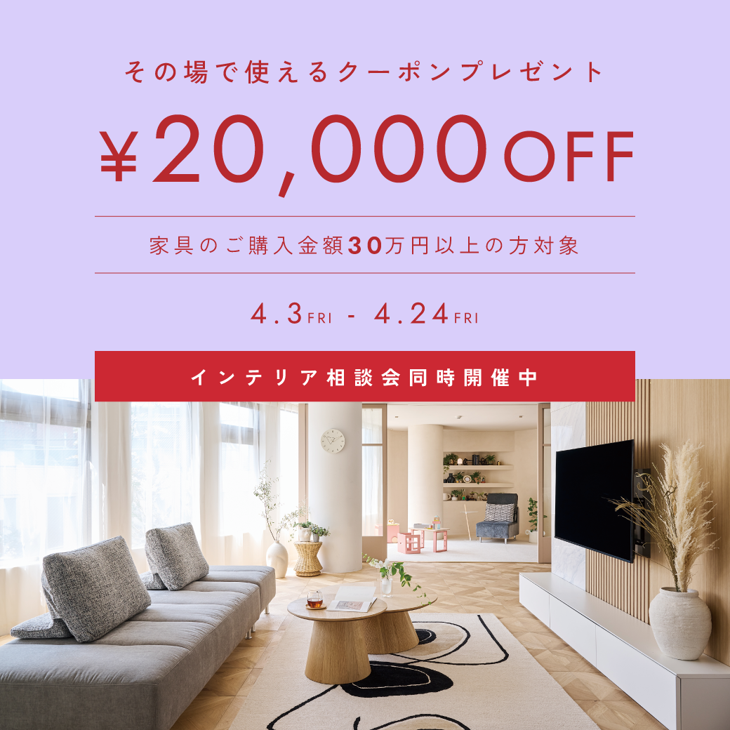 \家具30万円以上お買い上げで2万円OFFキャンペーンを開催!/