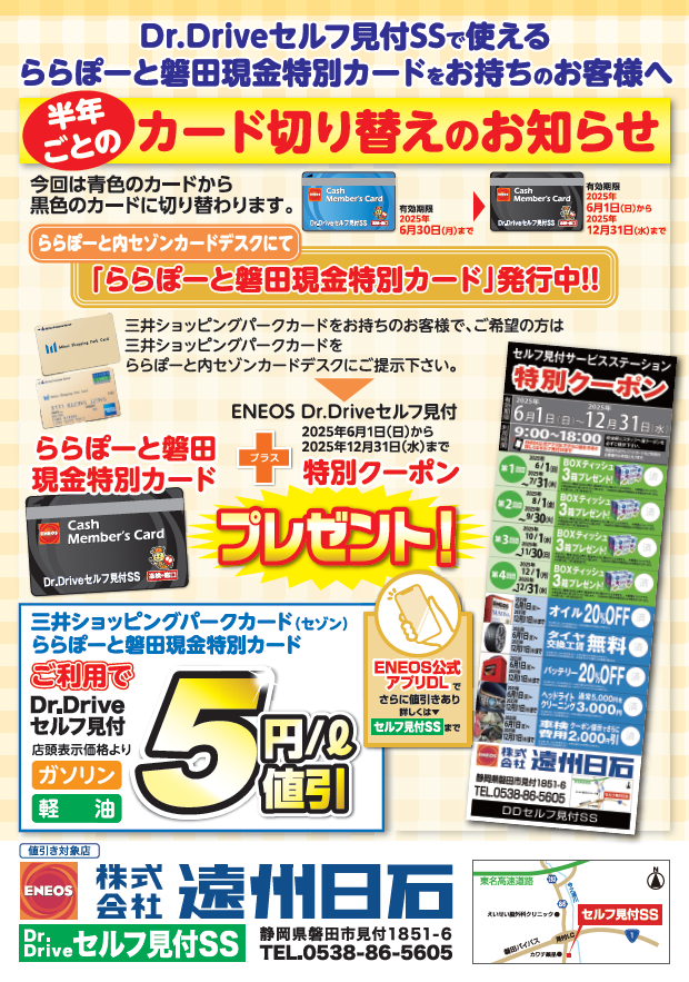 ※「ららぽーと磐田現金特別カード」は半年ごとのカード切り替えとなります。