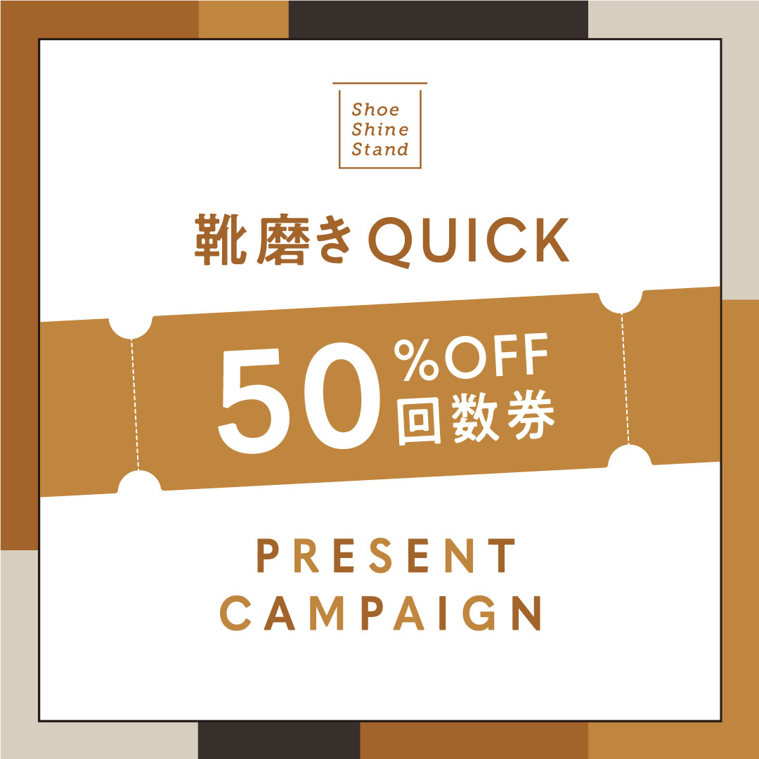 靴のご購入時にクイック(お手入れ)半額チケット(5枚つづり)プレゼントをいたします。