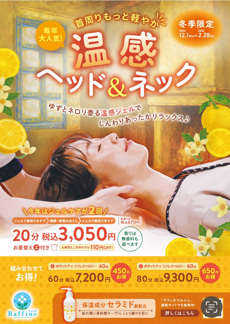 寒さでこわばったお身体や、重たいコートなどでお疲れを感じやすい首肩まわりを、ぽかぽかあたたまる温感ジェルでほぐしてリフレッシュ♪