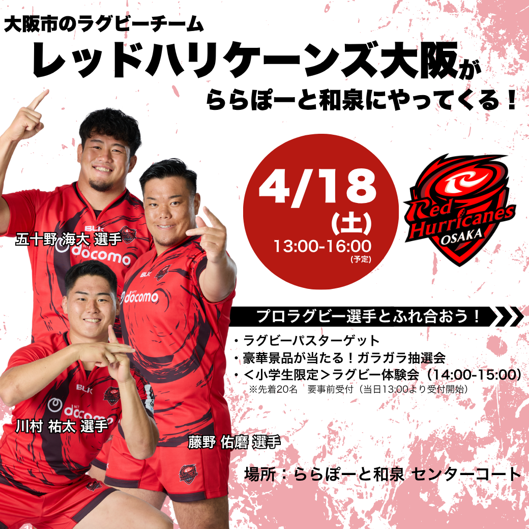 「レッドハリケーンズ大阪」がららぽーと和泉にてイベントを実施いたします!