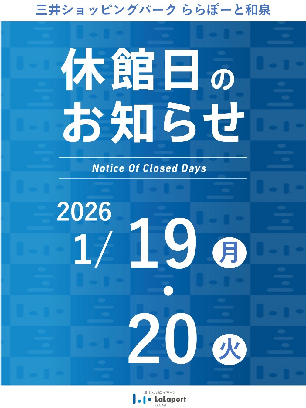 三井ショッピングパークららぽーと和泉 2025年度休館日のご案内