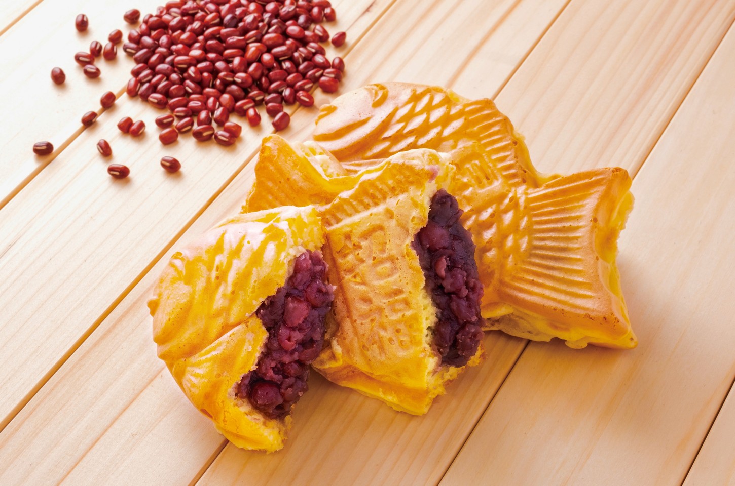 鯛焼き(つぶあん)は北海道の契約農家で生産された小豆と、砂糖2種類と塩のみを当社の製法で炊き上げた、保存料など一切使用しない安全安心な「つぶあん」です。