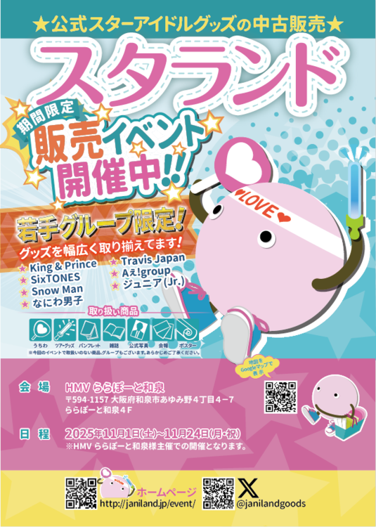 J-POP・K-POPの新作・話題作、映画Blu-ray/DVDはもちろんのこと、V-Tuber関連グッズ、ショッピングモールならではのファミリー、キッズ、演歌・歌謡曲コーナーもご用意しています。リスニングスポットや商品検索、予約などが簡単にできるHMV KIOSKも設置。HMVららぽーと和泉店は、K-POPとV-Tuber関連グッズを推してます!皆様のご来店お待ちしております。
