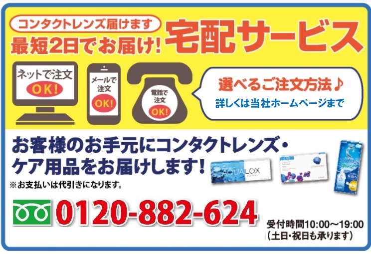 会員様はコンタクトレンズの宅配を電話・メールで承っております。