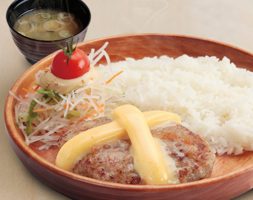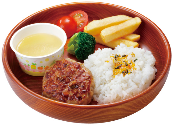 - ハンバーク、お子様ハンバーグ、トッピング(チーズ、エッグ、おろしそ、カリー、エビフライ)、フライドポテト(大中小の3サイズ)、オレンジドリンク、ウーロン茶、イチゴミルク