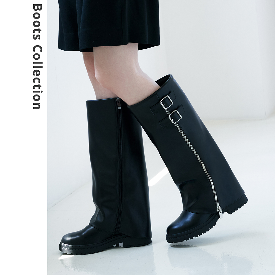 ロングブーツにレッグカバーをレイヤードしたような新鮮なデザインとなっています。
