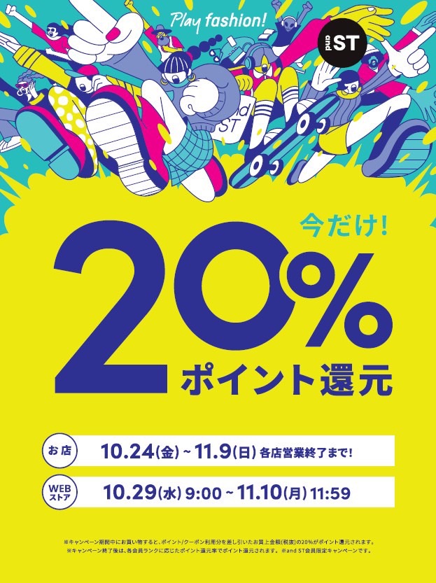 10/24(金)~11/9(日)まで『and ST』20%ポイント還元キャンペーンペーンを開催!