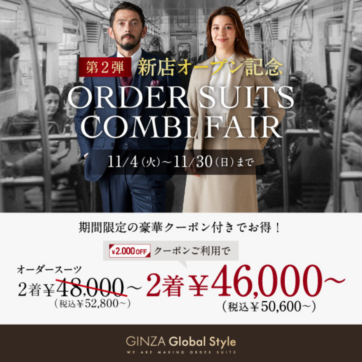 【11月13日(木)OPEN!!】1着あたり25,300円~「オーダースーツコンビフェア」開催