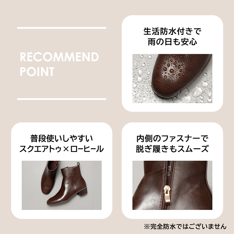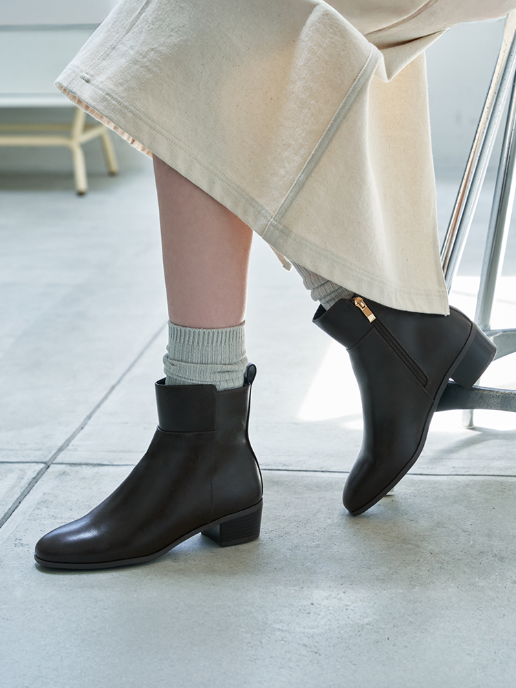 シンプルで万能なローヒールブーツの晴雨兼用アイテムが登場。