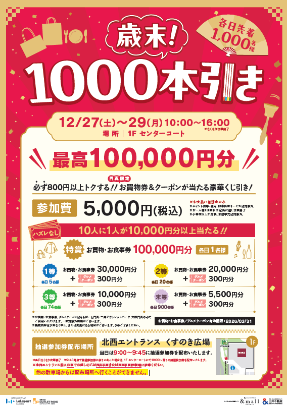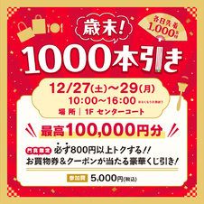 ※9:45時点で抽選参加券に余りがあった場合は、1Fセンターコートにて10:00~残りの抽選参加券を配布いたします。