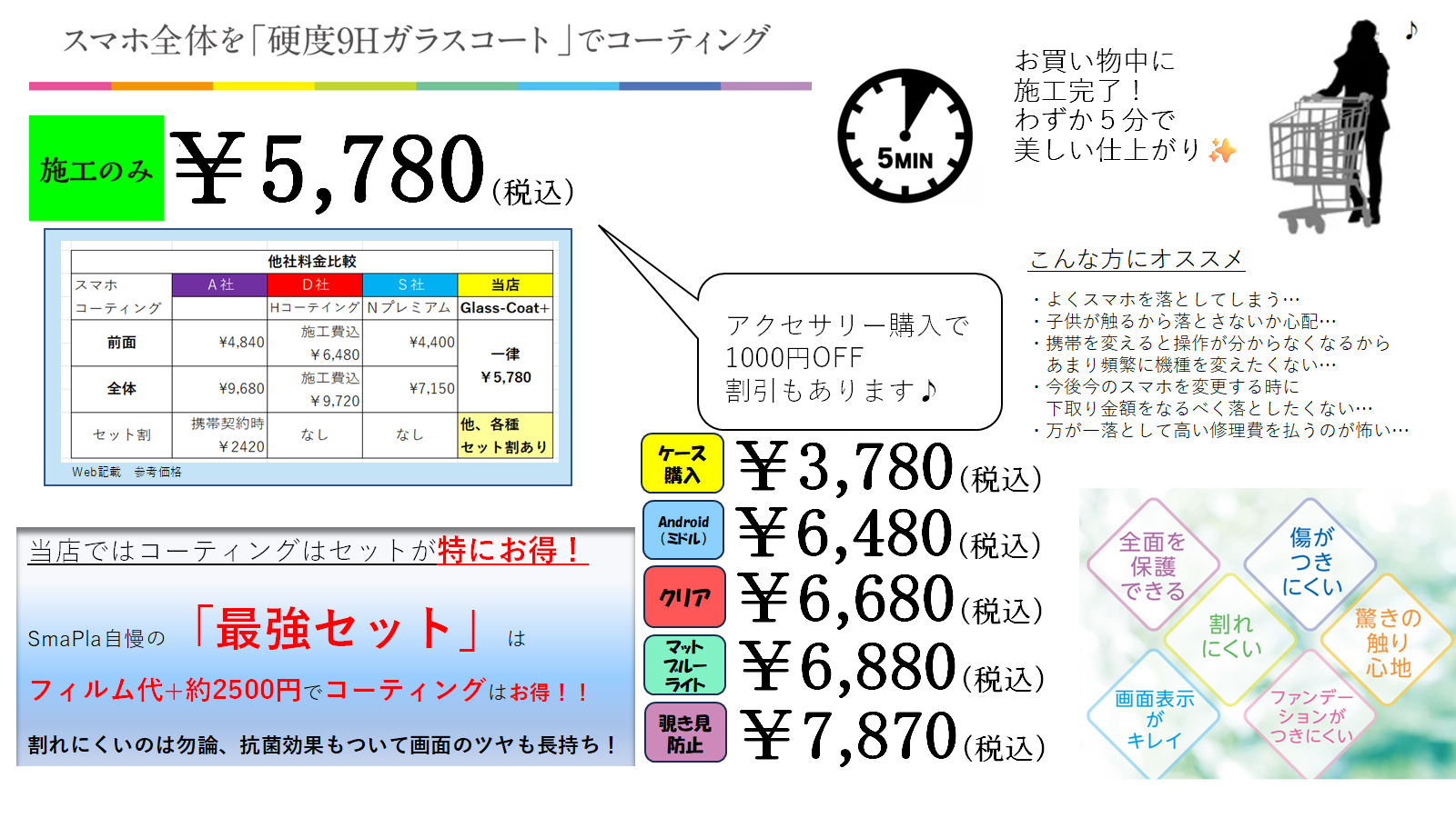 ケース+ガラスコーティング+フィルムで携帯全体二重保護が人気!