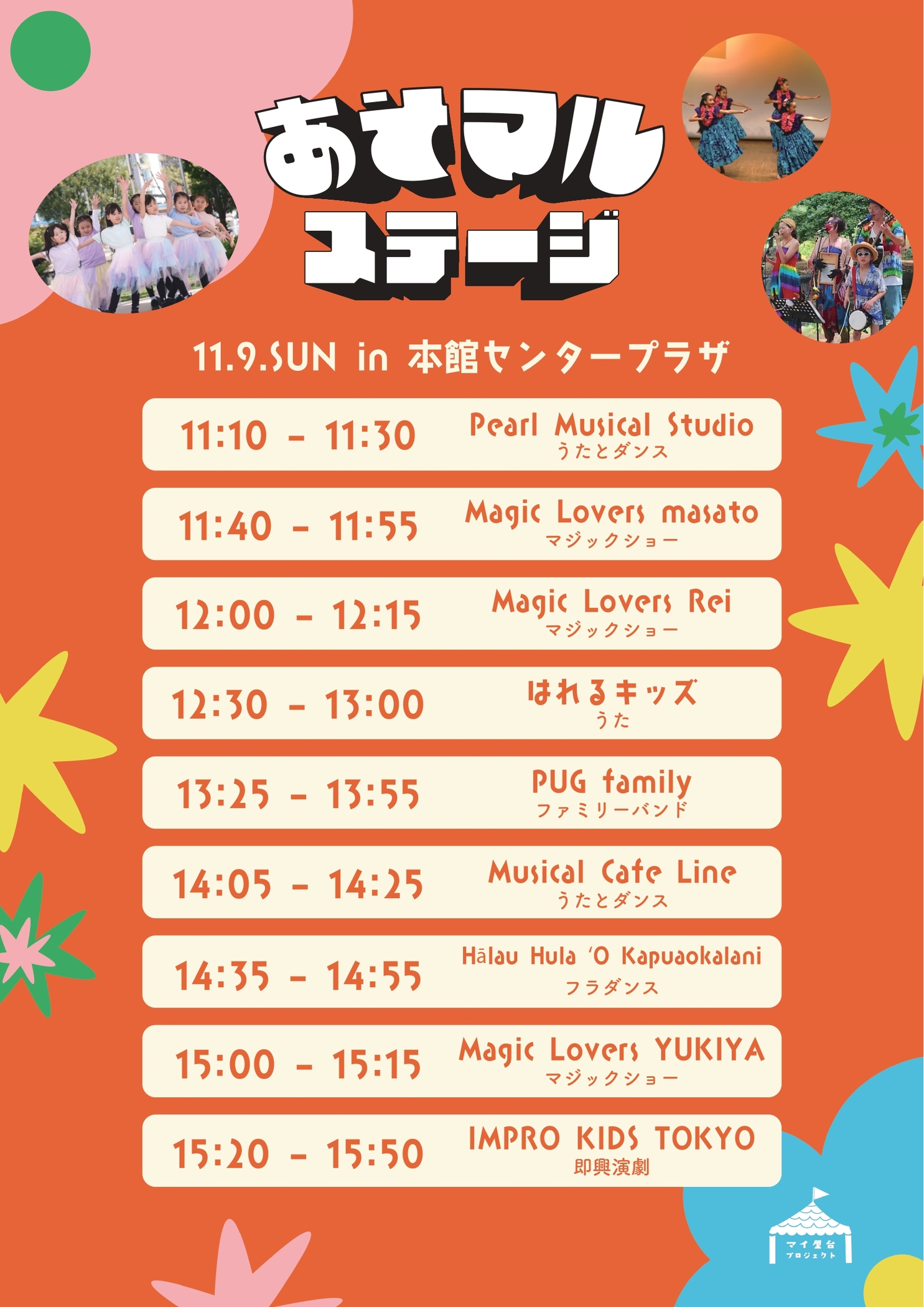 子どもによるパフォーマンスやインプロ演劇ショー、バンド演奏、ダンスなどをお届け!
