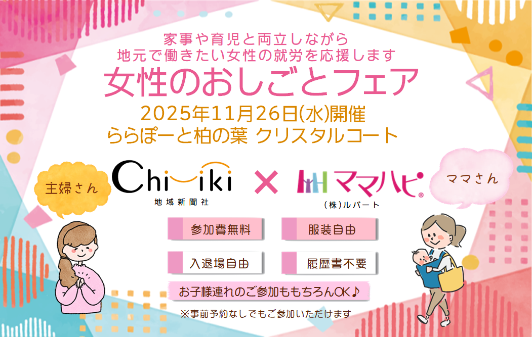 - 【入場無料】地域の企業と出会える!「女性のおしごとフェア」開催♪