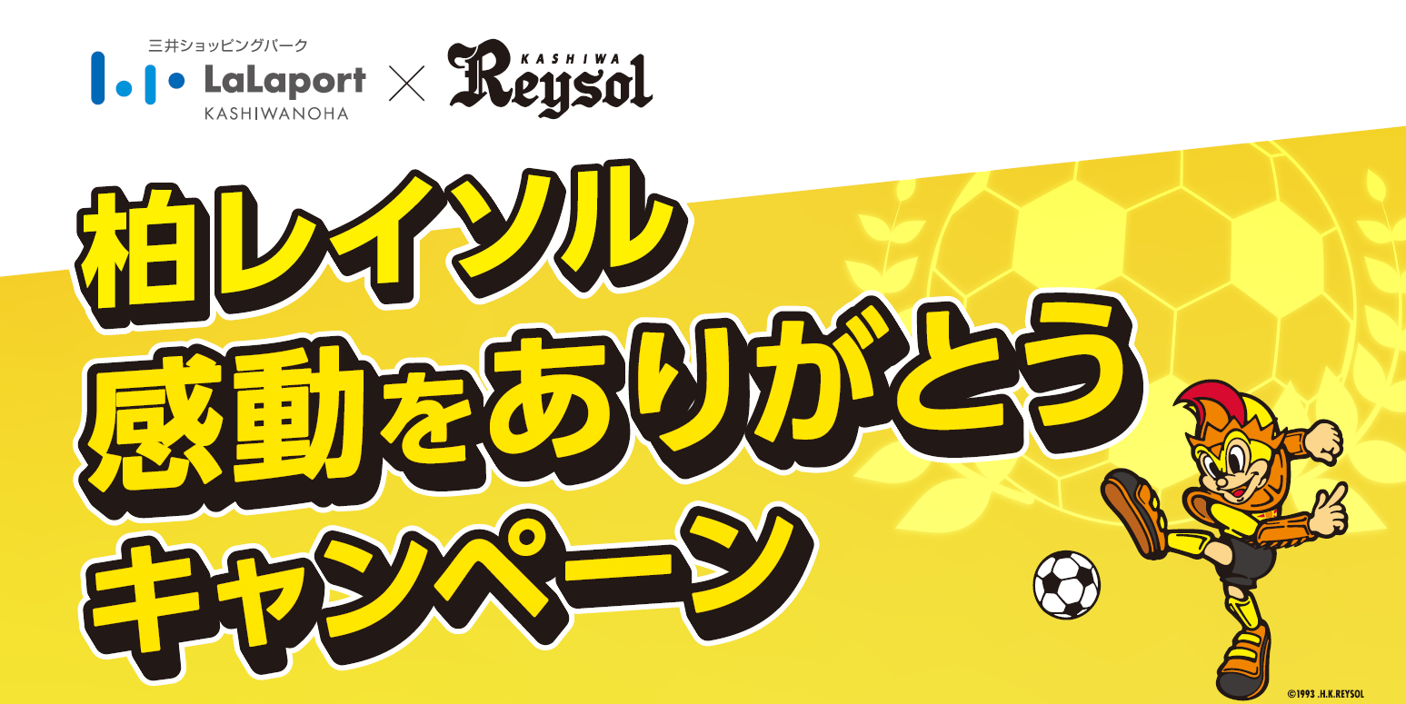ぜひこの機会に、柏レイソルへの「ありがとう」の気持ちを分かち合いながら、館内でのお買い物やお食事をお楽しみください。