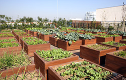 赤棟と青棟の上には、太陽と風で発電する装置があります。施設で使う電力を、少しでも減らすために頑張って働いています。