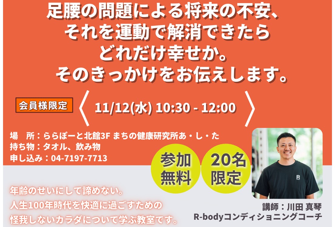 ● お申込み: まちの健康研究所あ・し・た Tel 04-7197-7713