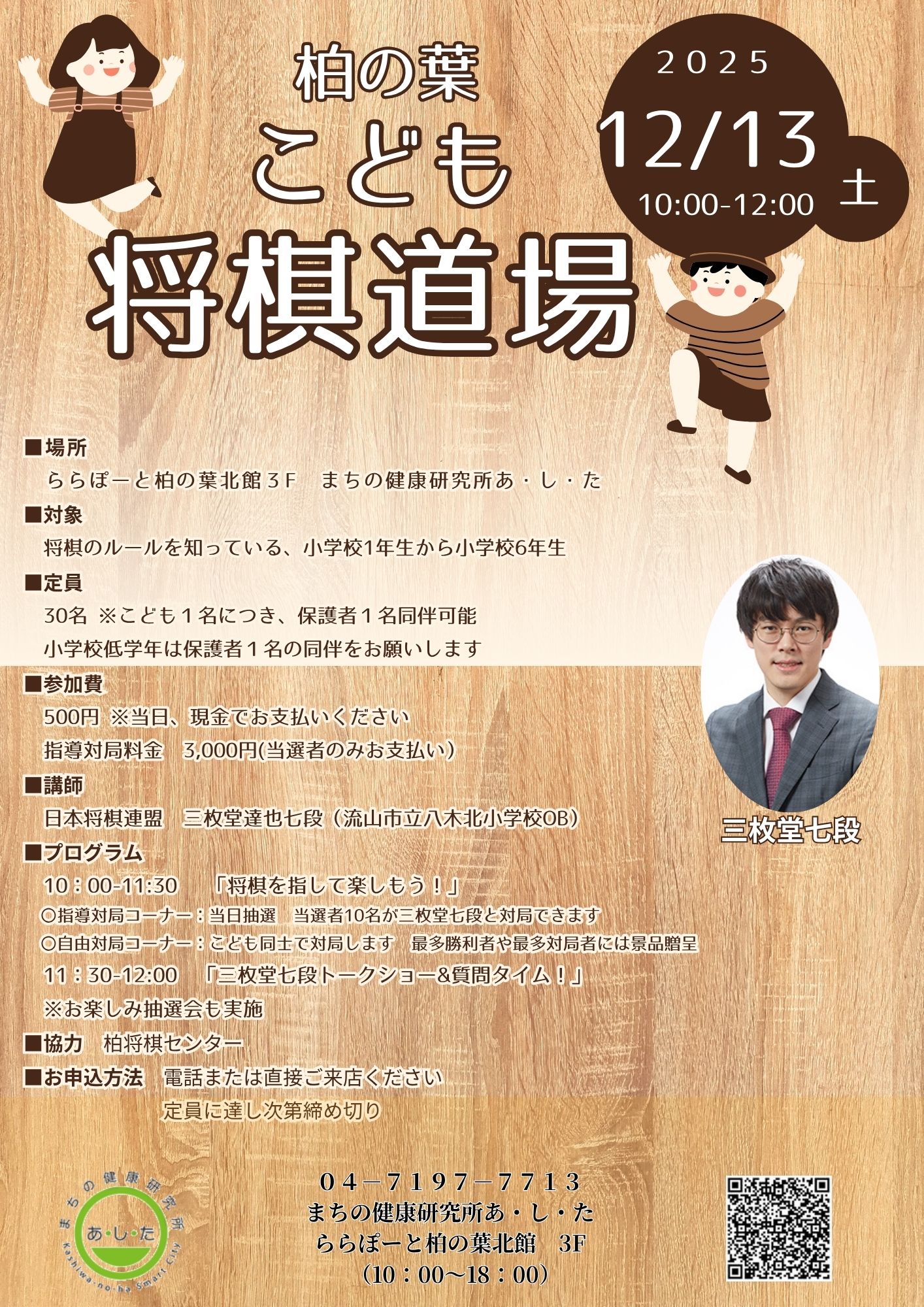 将棋のルールが分かる小学校1年生から6年生対象の将棋道場を柏の葉で開催します!